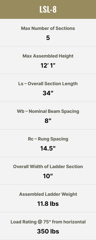 This 3-segment tactical ladder is a good option for those who do not require the compact design of the LSL series of ladder, but still need the overall length.